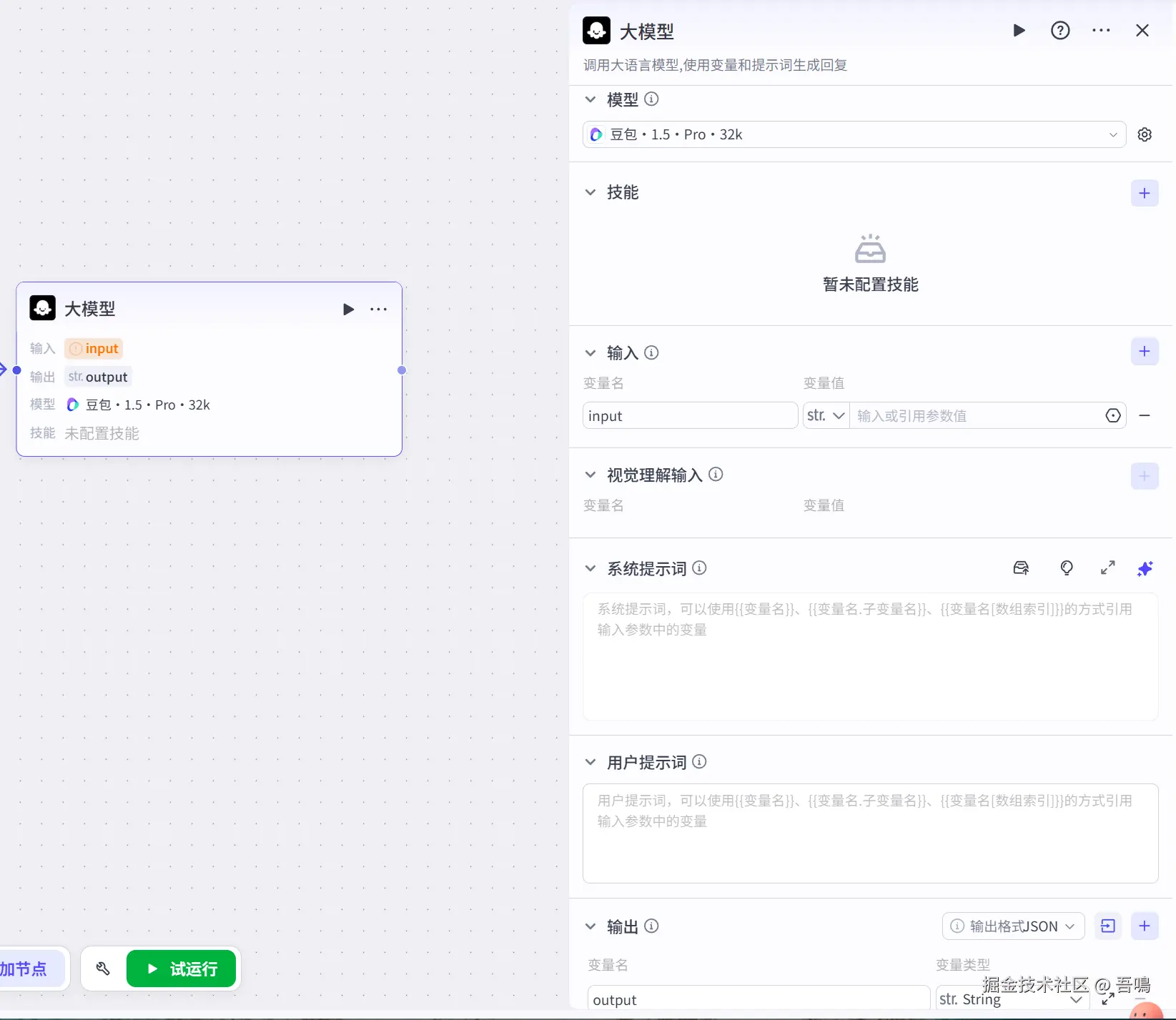 - 输出:定义大模型节点输出的内容