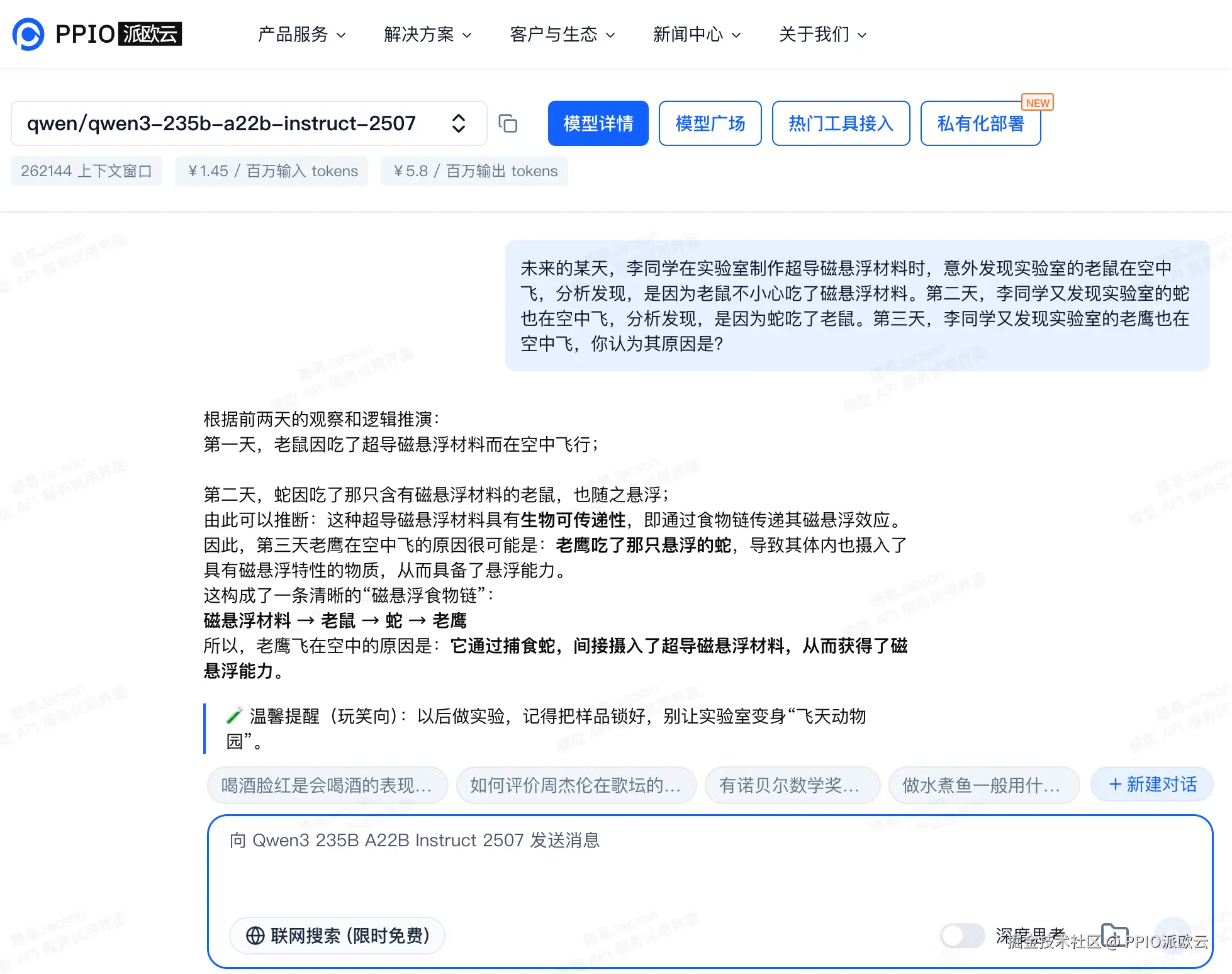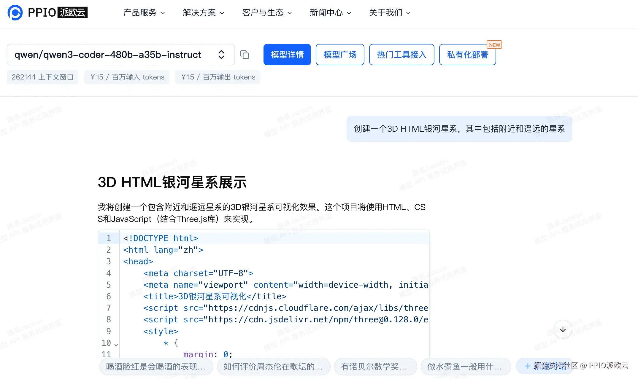 我们通过几个案例来测试一下 PPIO 上线的两款模型的能力。