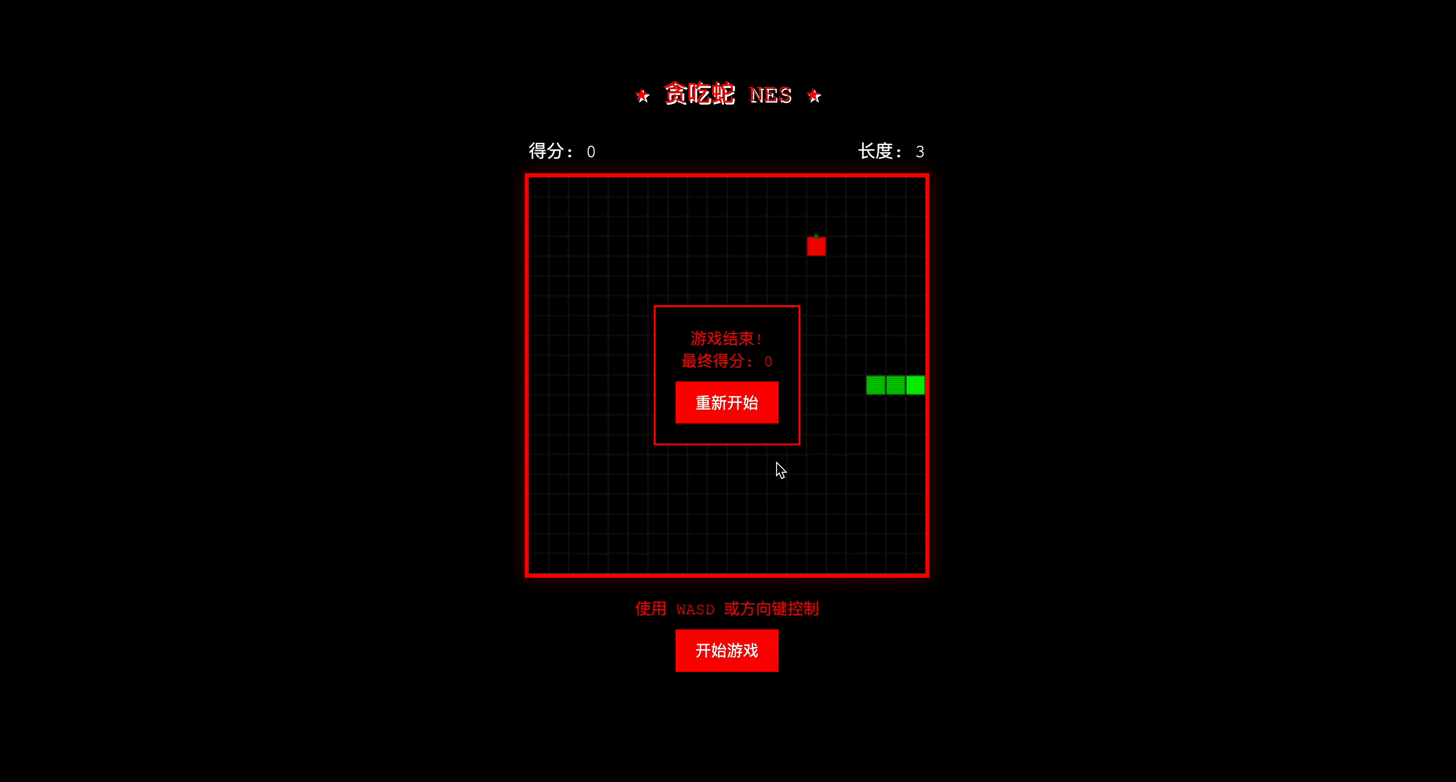 提问:创建一个红白机风格的贪吃蛇游戏。