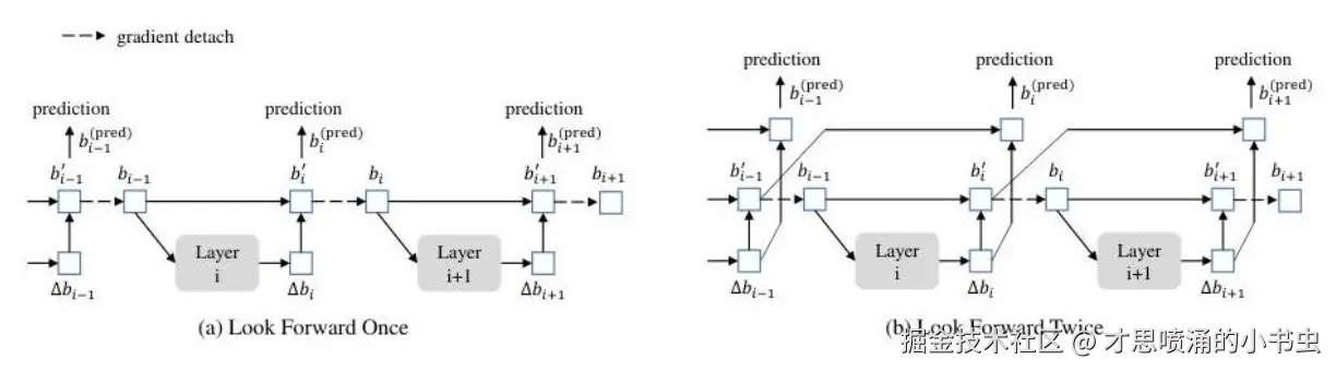 图6:(a) 一次前瞻和 (b) 二次前瞻边界框预测细化机制的比较。