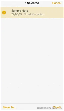 步骤3.在屏幕右上角,点击“编辑”,然后手动选择要同步到iCloud的笔记。选择后,点击底部的“移动到”选项。