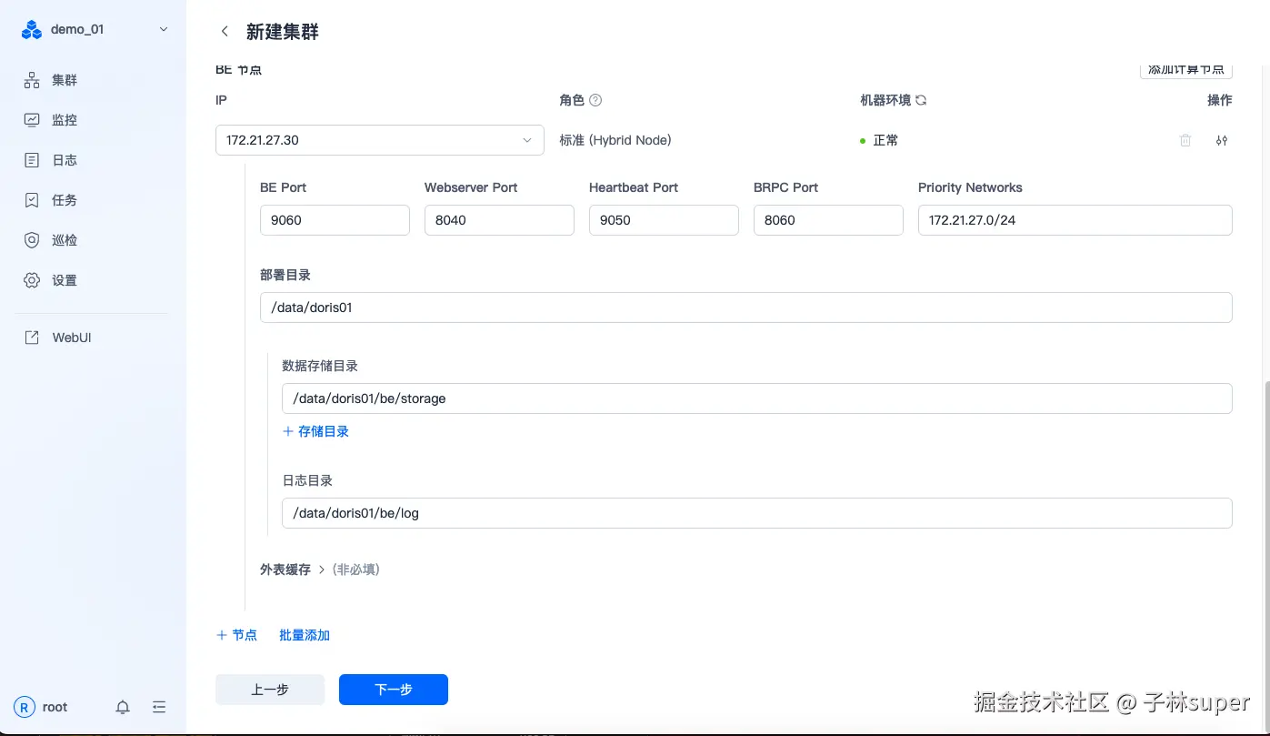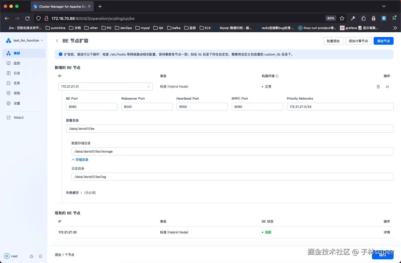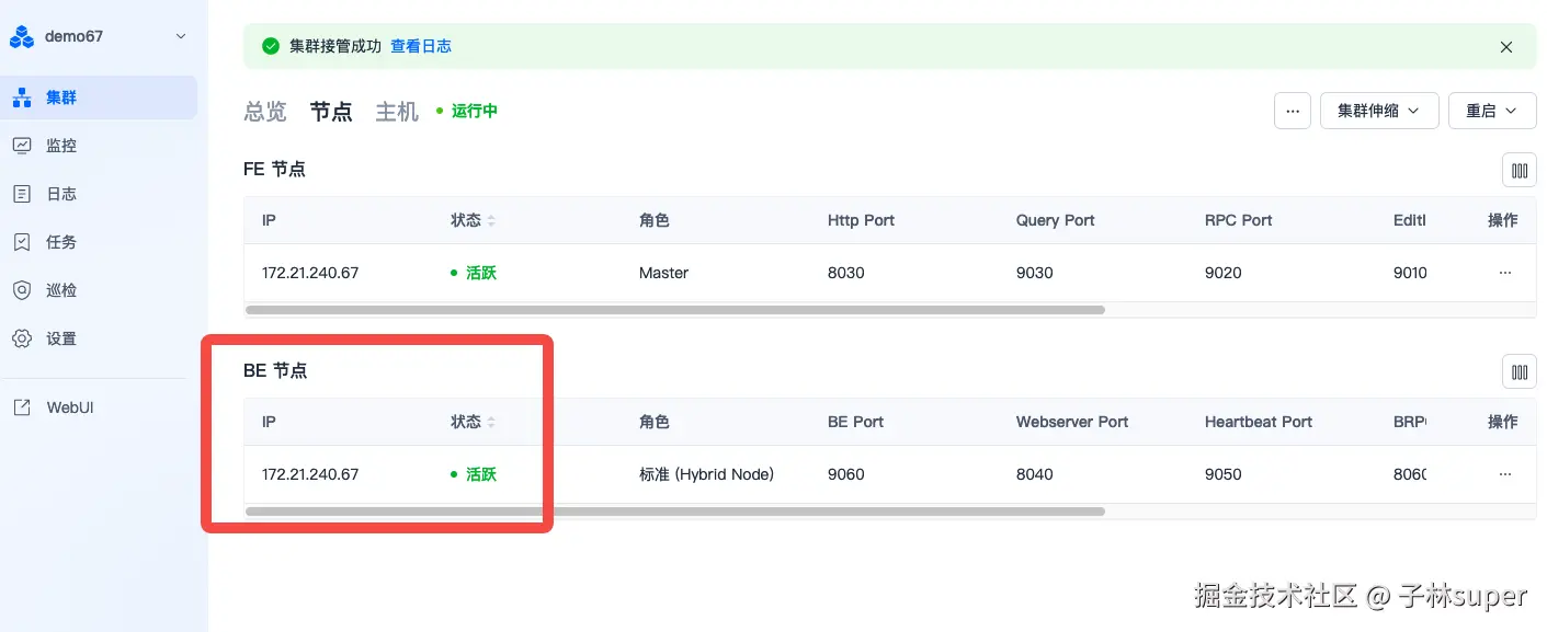- 新增BE节点