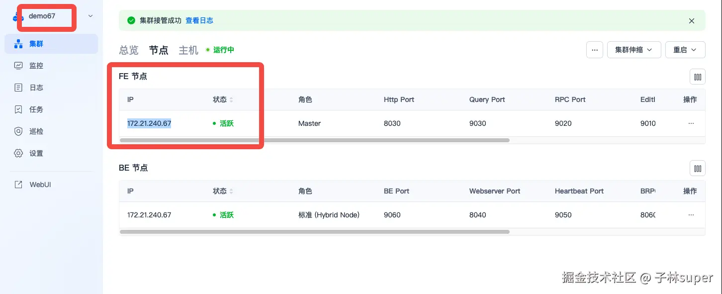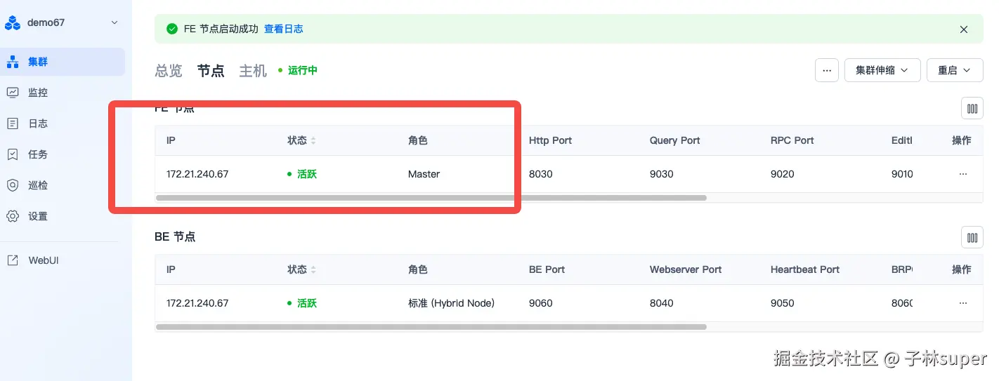 - 检查fe集群信息