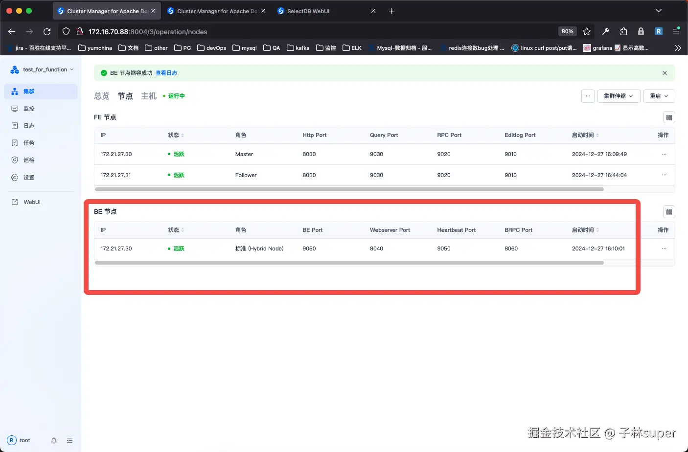 - 检查be集群信息