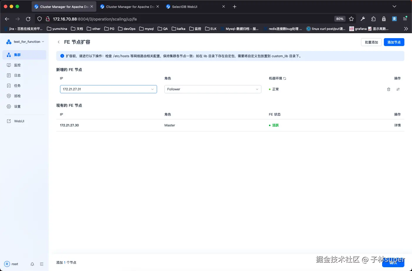- 新增fe节点