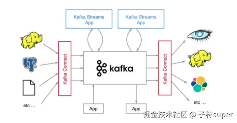 - ④ 流式处理:结合Flink, spark ,Storm做消息实时的指标计算