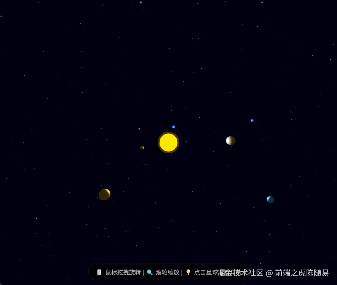 接着又让它写一个可交互的 3D 太阳系,速度也是嘎嘎快。