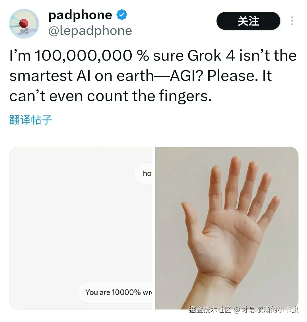 主流多模态模型正在遭遇一场 “认知危机”:它们能写代码、做报告,却在最基础的视觉任务上栽跟头。Grok 4 发布以后,社交网络上首先爆火的不是 AGI 来临,而是“AI 到底能不能数清手指”。