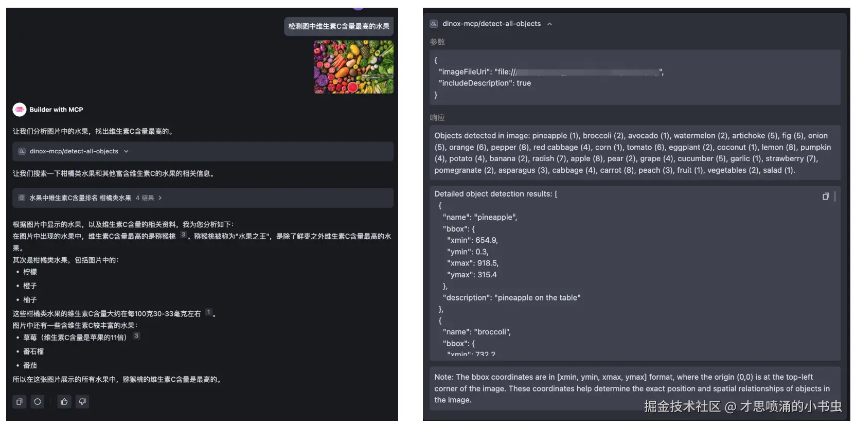 回到“数手指”的例子,如果用户通过 API 或 MCP 整合 DINO-X 视觉模型的能力,然后再基于 DINO-X 视觉模型输出的目标检测结果询问大语言模型,那么大语言模型就能够立即得到准确的答案。