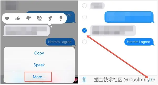 第 2 步。按住对话中的任意文本并选择“更多”。