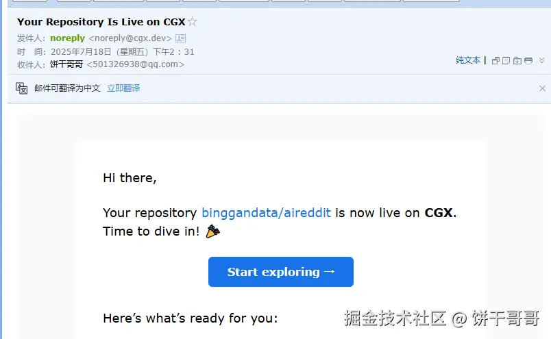 还挺快,不用 10 分钟就收到收到邮件说索引好了