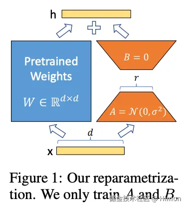 它的更新过程为:, 其中秩 r << min(d,k)。