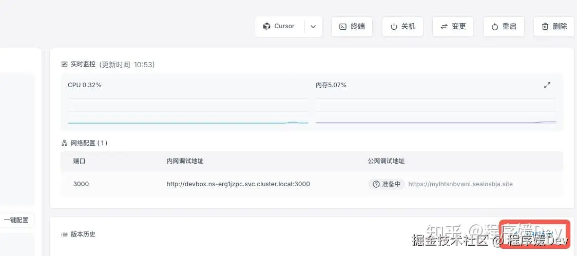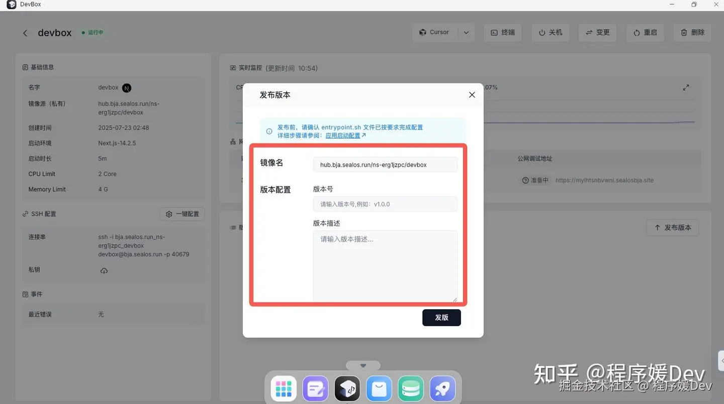 - 在 Devbox 详情页面,选择你刚刚发布的版本。