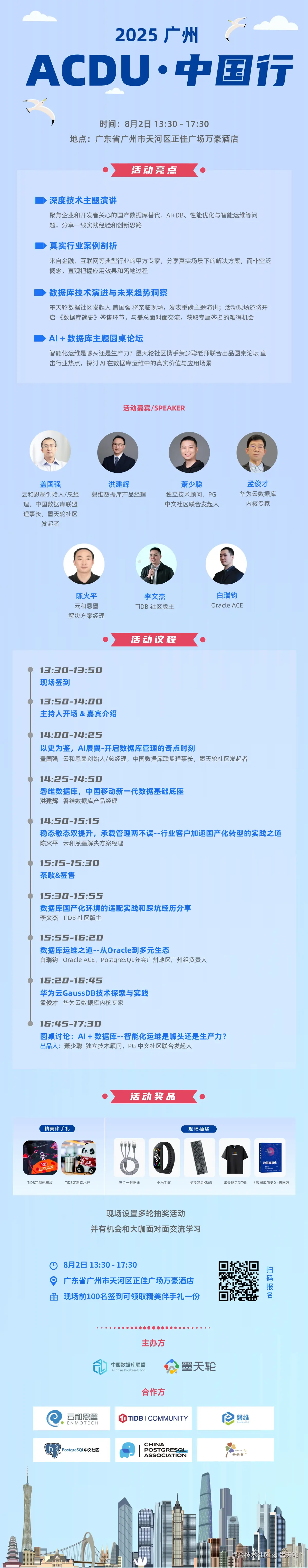 本期【ACDU·广州站】将于8月2日正式开启,以「数据库升级实战:国产替代与智能运维的落地指南」为主题,汇聚行业精英,通过深度主题演讲、真实行业案例剖析、专家圆桌对话,共同探索数据库技术的前沿应用与实战经验,助力企业和开发者在数字化转型、国产化替代的道路上迈出坚实步伐。