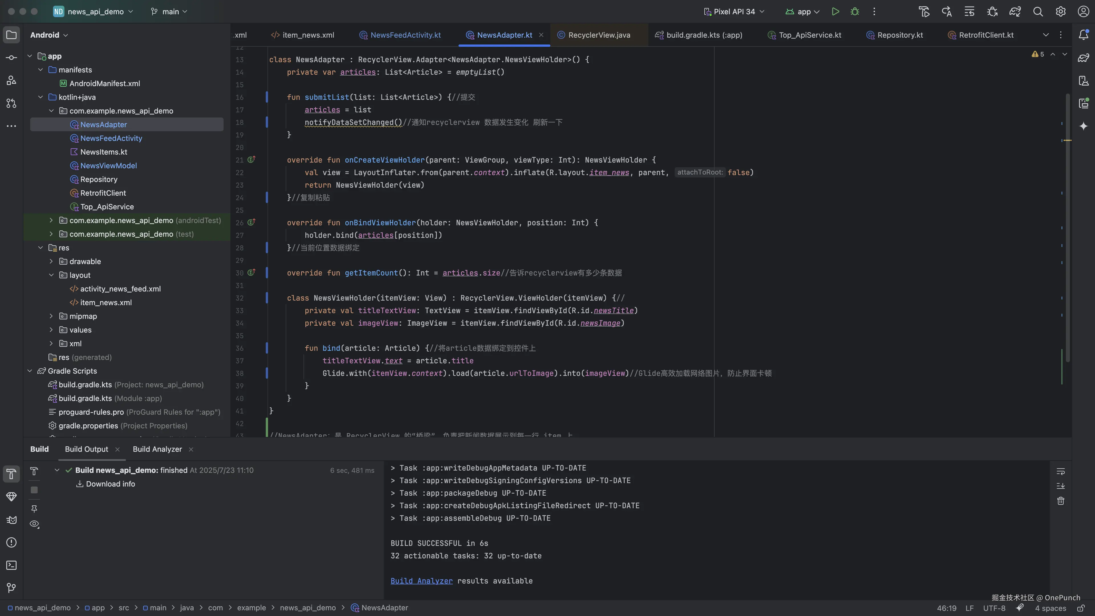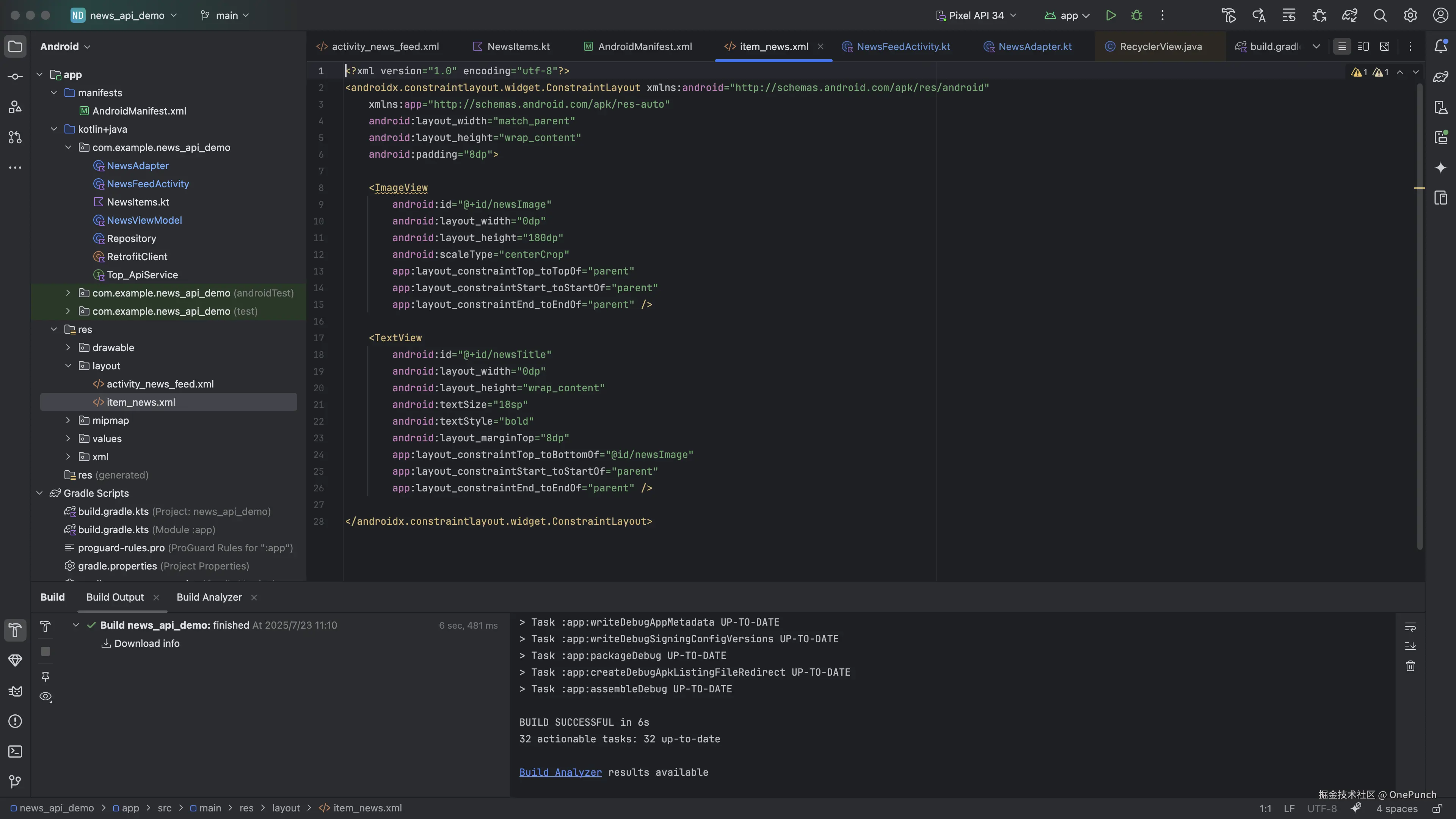 第四步:RecyclerView展示新闻列表