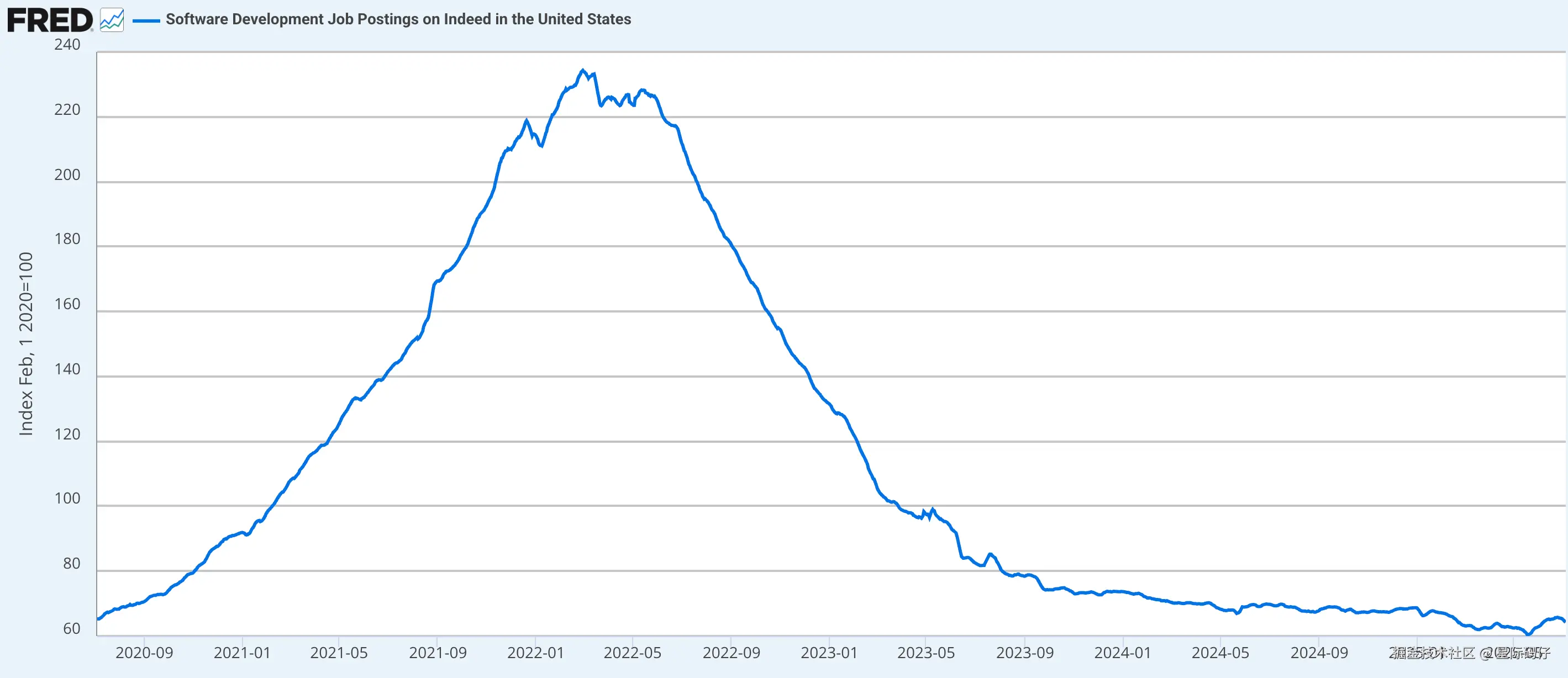 Indeed 美国软件开发职位发布指数:[fred.stlouisfed.org/series/IHLI…]
