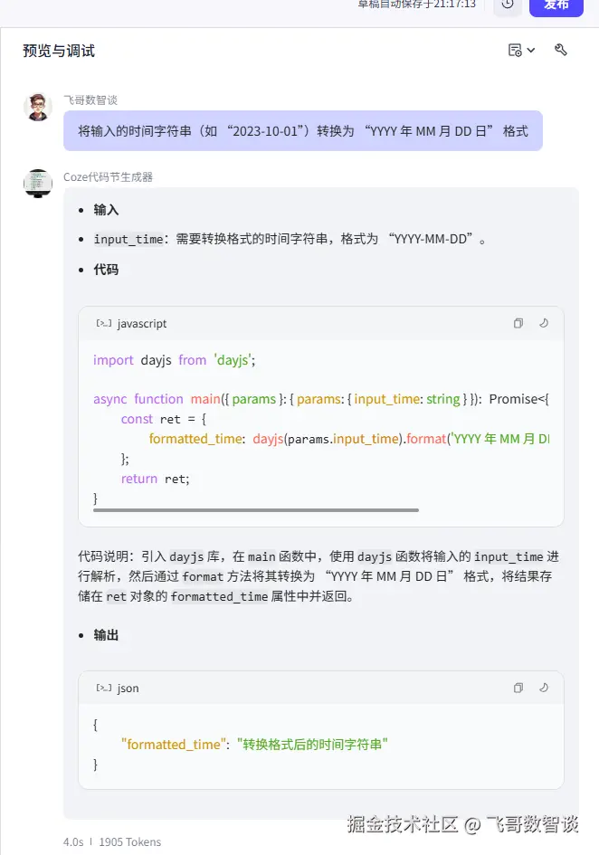 今天给大家分享了如何通过 Coze 搭建一个帮我们配置 代码 节点的智能体,用于辅助配置 Coze 工作流 代码 节点,还是非常好用的。