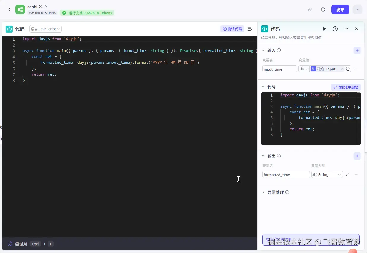 今天,我们就借助“Coze平台”来帮我们完成 代码 节点的配置及代码的编写。