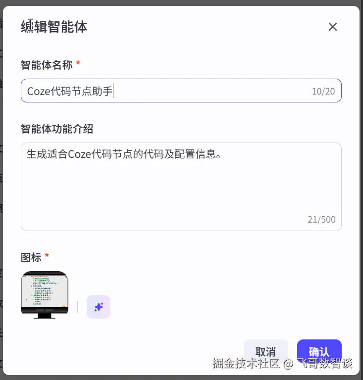 3、创建一个专用的智能体“Coze代码节点助手”。
