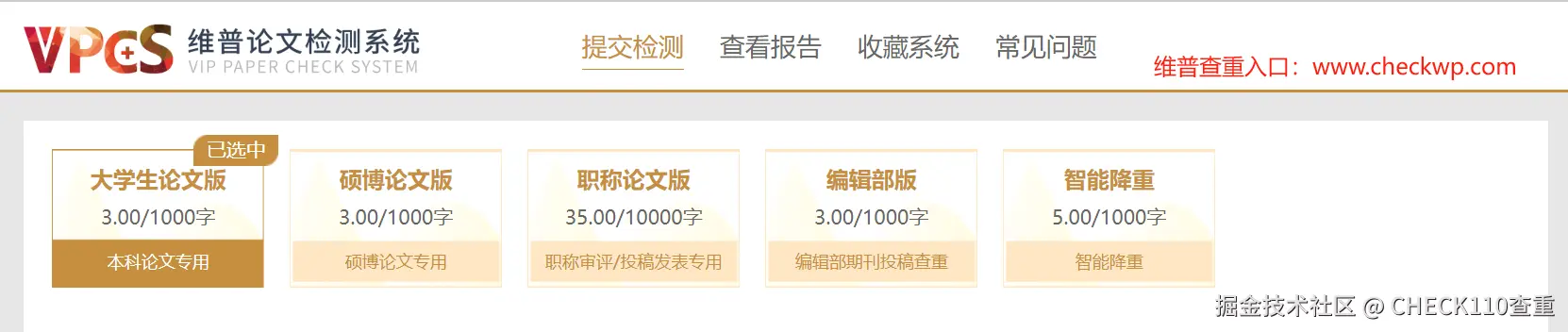 一定记住,不同的查重系统它们的数据库和算法都有差异,给出的重复率结果都不一样,有些甚至差异极大。现象一下,如果你没和学校使用一样的查重系统,得到的查重报告看着合格了,可学校用的是维普查重( www.checkwp.com ),一查重复率飙升,那时候后悔可就晚了。
