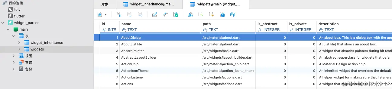 将收集的所有 Widget 组件基本信息,录入 sqlite 数据库