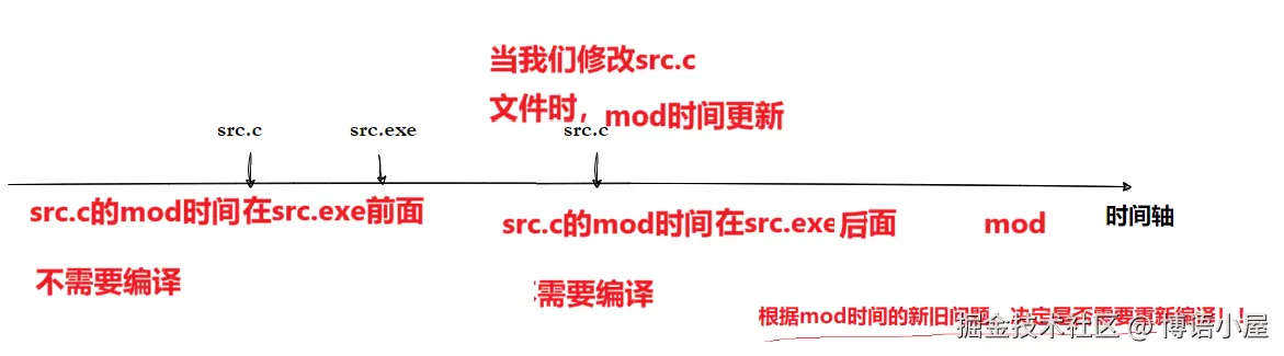 当一个文件被编译好了就不需要再次被编译了,这样做可以节省计算机资源,但是make/makefile又怎么知道该文件是否需要被编译呢?