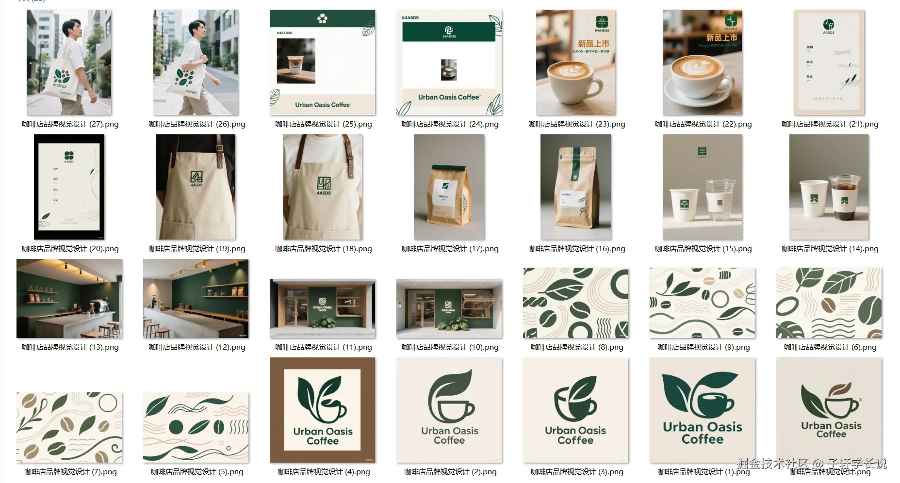 我输入围绕一家全新的咖啡店名为:都市绿洲,设计一套完整的品牌视觉形象。