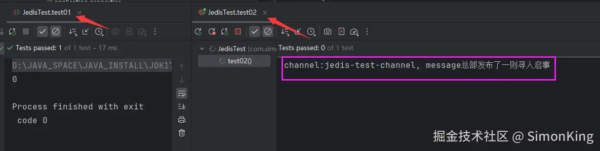 可以看到test01发布了消息,test02也订阅到了消息
