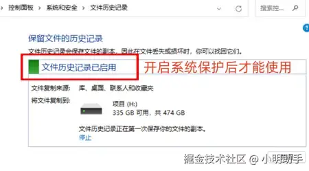 恢复硬盘数据妙招4:系统保护结合文件历史记录工具
