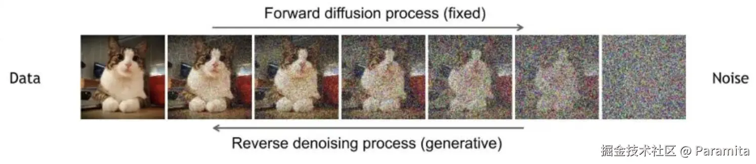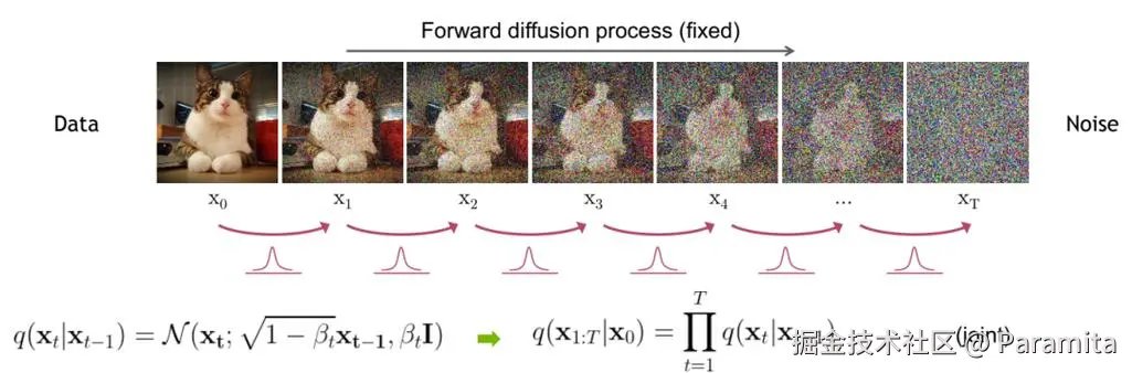 - 通过逐步向图像像素添加噪声,构建一个前向扩散过程;