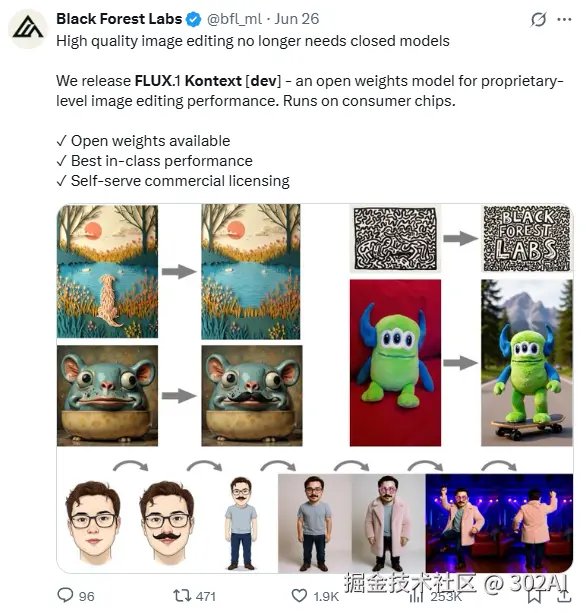 时间来到 2025 年 6 月 26 日,FLUX.1 Kontext-Dev 终于迎来了开源版本的发布。这个消息对于 AI 开发者和设计师来说,无疑是一次技术普及和创新的重大推动。