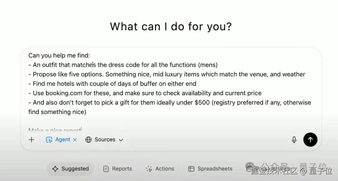 接下来,奥特曼提到 OpenAI 最新的 Agent 功能,比如让 AI 去常去的几家餐厅查看明晚 7 点是否有空位,并完成预订。