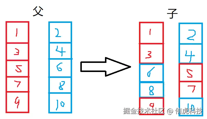 在繁殖得到新的一批子代后,我们将这些子代也进行一次竞争,这样所有的父代、子代就都有各自的适应度了。我们将它们一起根据适应度进行排序,显然,如果父代的数量是N,那么总共就有2N个个体。在排序后我们选择前N个个体作为本轮的优胜者,也是下轮的新父本。