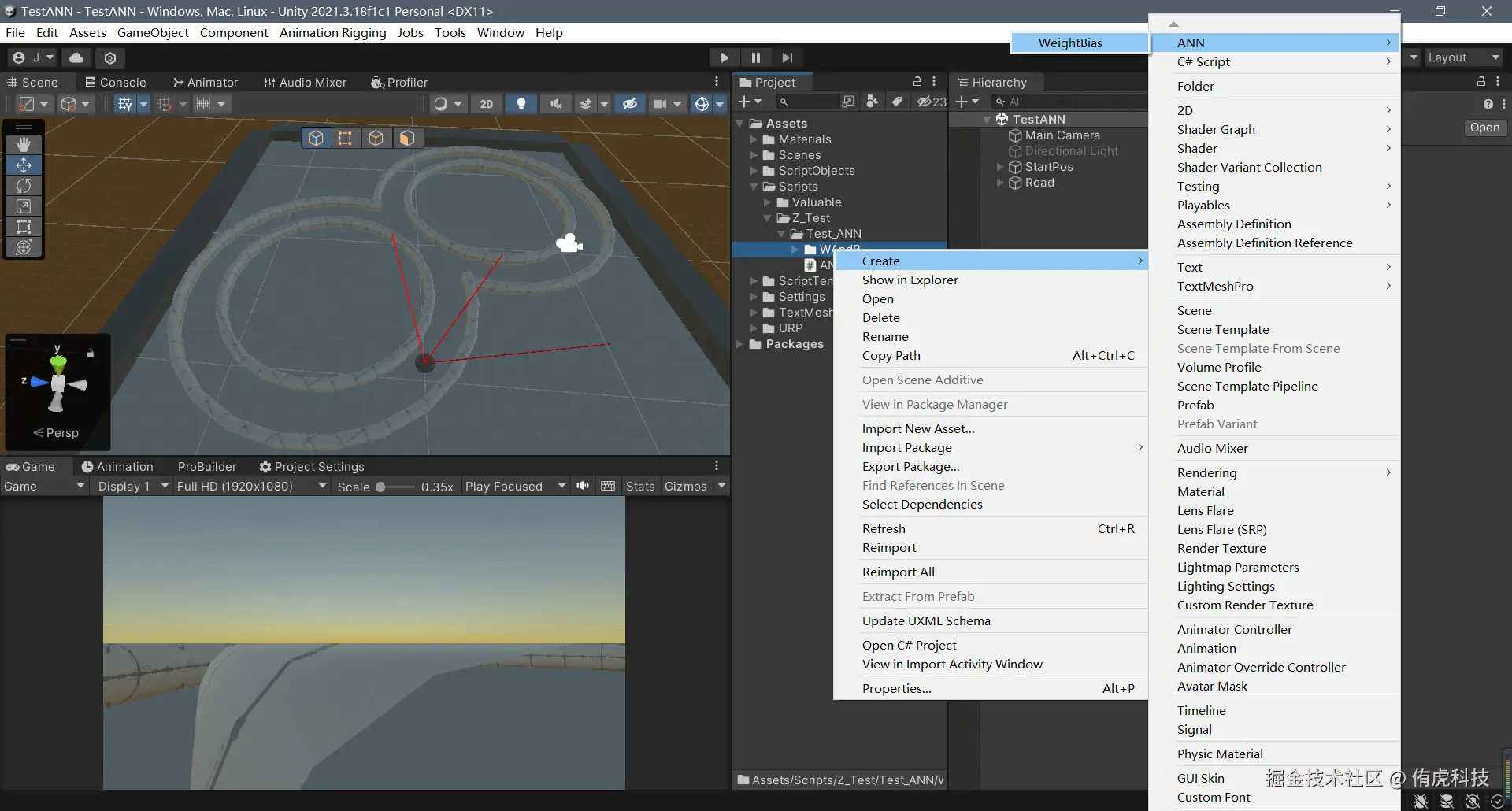 在我的实现中,已将网络结构以ScriptObject形式存储,我们先新建一个,在Project下右键Create/ANN/WeightAngBias: