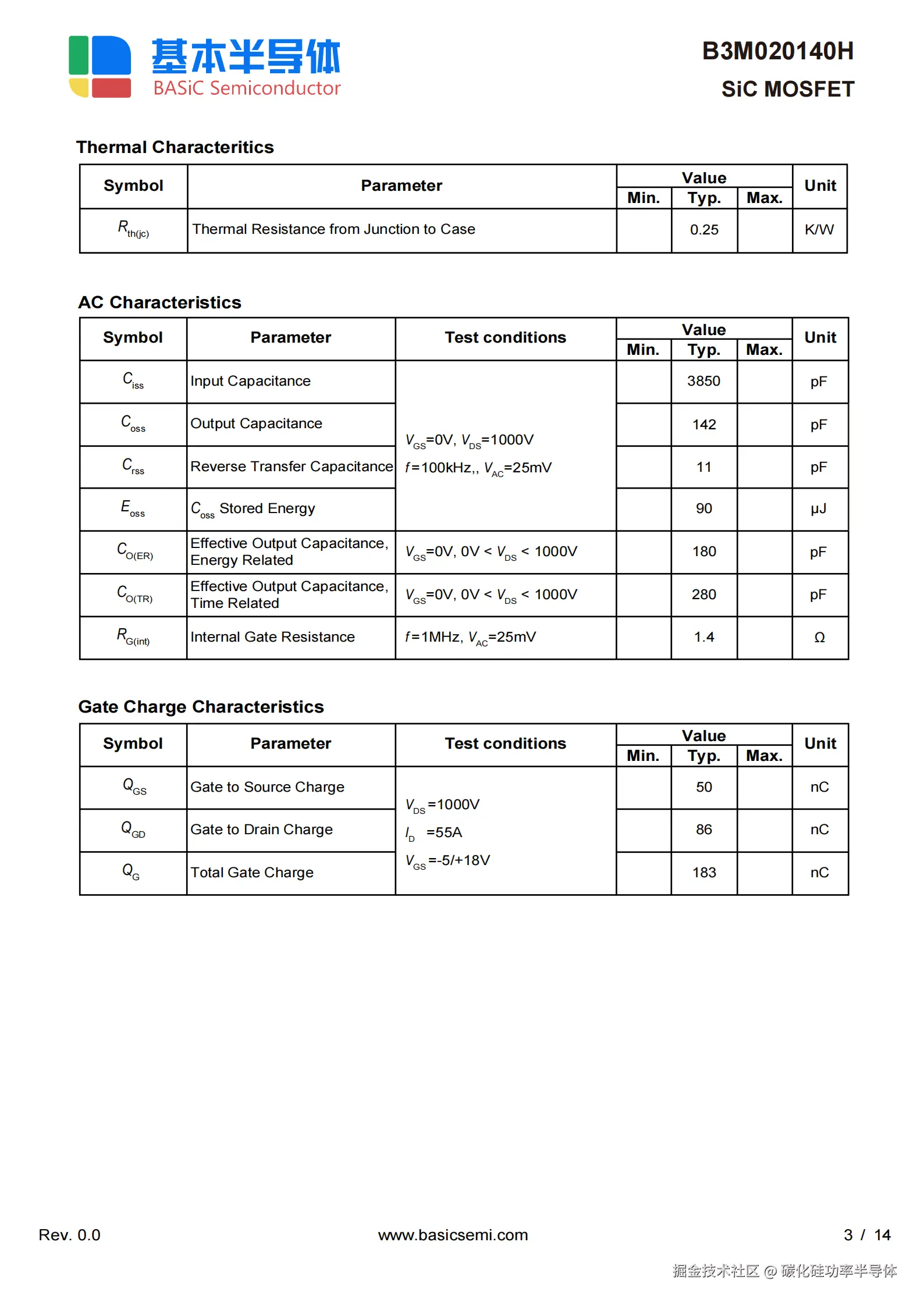 B3M020140H在国产SiC MOSFET中具备显著优势: