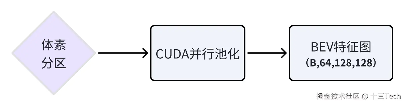ranks_feat, # ranks_feat: 特征回溯,排序后点的特征空间索引。核心作用: 至关重要! 在池化时,通过它可以找到该点对应的原始 2D 图像特征向量(来自哪个 Batch、哪个相机、哪个特征图位置 (h, w))。同一个 (b, n, h, w) 位置的所有深度采样点共享相同的 ranks_feat,方便后续操作。