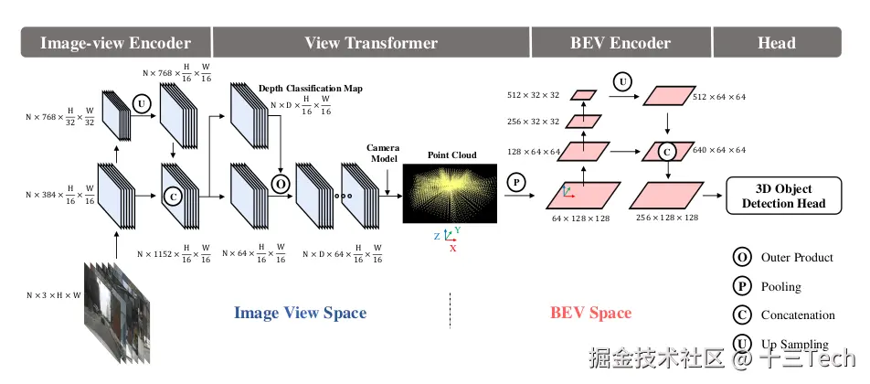 - Framework 模块化的设计思想:和BEV语义分割框架类似,包括四个部分(Image-view Encoder、View Transformer、BEV Encoder、 Task-specific Head)