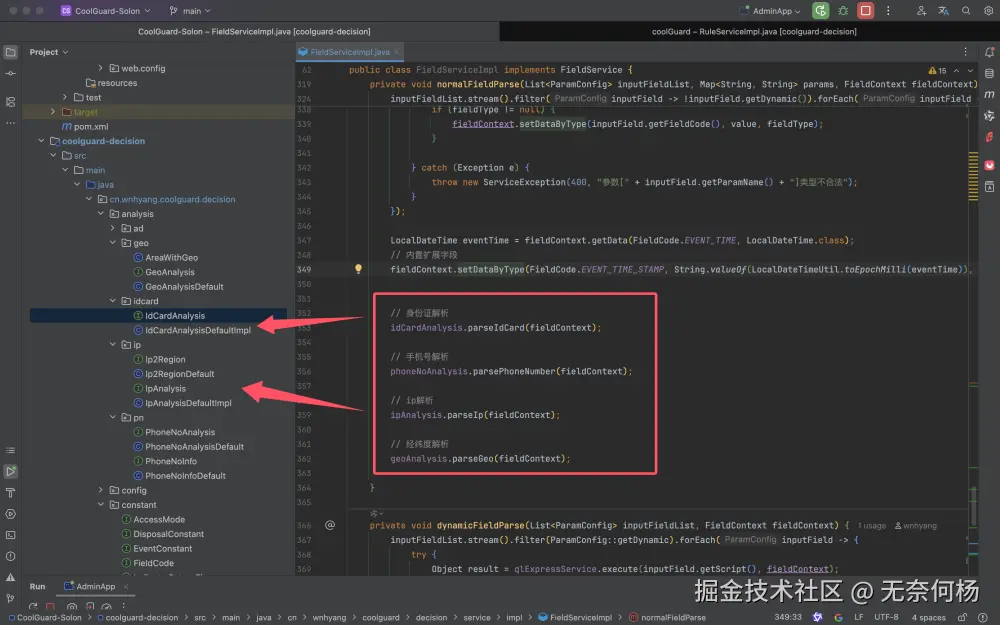 目前计划中还是使用LiteFlow进行编排,首先将系统默认的身份证、手机号、IP、经纬度解析作为默认保底方法,如果有自定义那么优先,考虑中使用LiteFlow的CATCH编排。