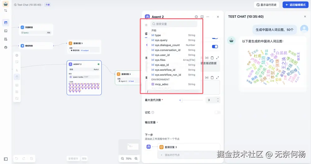 优先先说一下什么是变量编辑组件,其实就是可以快速引用变量,一种友好的使用变量的组件,就像dify中绝大多数节点支持的编辑框一样,可以在输入时通过键入“/”等特殊字符唤起可选变量列表,选中变量后在编辑框显示的是一整个变量名,只能整体删除,支持数据双向绑定,反显、粘贴等功能。有点像antdv的mentions组件。