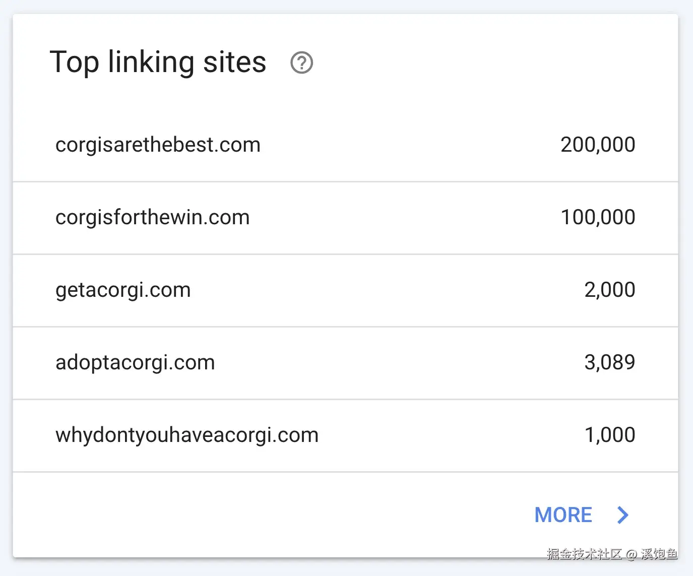 外链是其他域上指向我们域的链接,我们可以在顶部看到网站页面和域的外链总数、一个网站有多少个外链等: