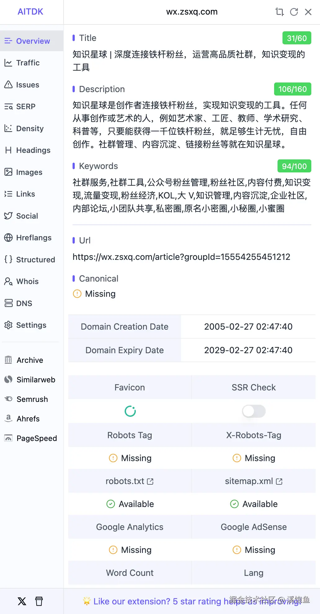 我个人免费工具使用得比较多的是AI TDK、Google Search Console、SmallSEOTools、Ahrefs外链权重检测、MOZ外链权重检测。