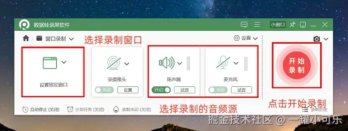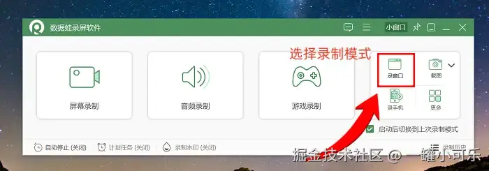 步骤1:在数据 蛙官网中找到数据 蛙录屏软件下载链接,根据你电脑系统,选择对应的版本下载。接着打开数据蛙录屏软件,自由选择录制模式,今天就以 “窗口录制” 模式为例进行讲解。