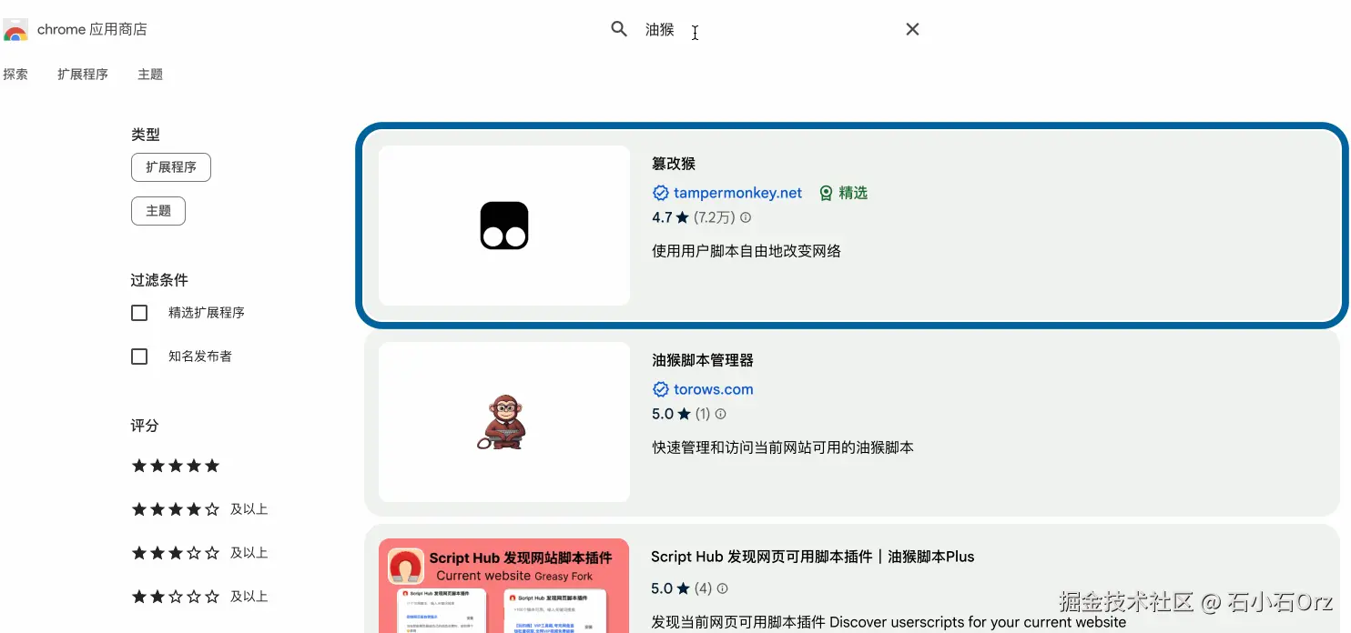 油猴是一个谷歌扩展程序,你可以在Chrome应用商店中,搜索 “篡改猴”进行安装。