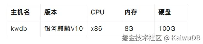 参考官方手册给出的部署 KWDB 所需的硬件规格: