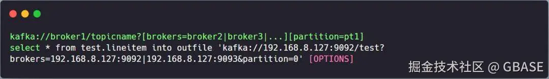 导出文本数据到kafka集群SQL如下: