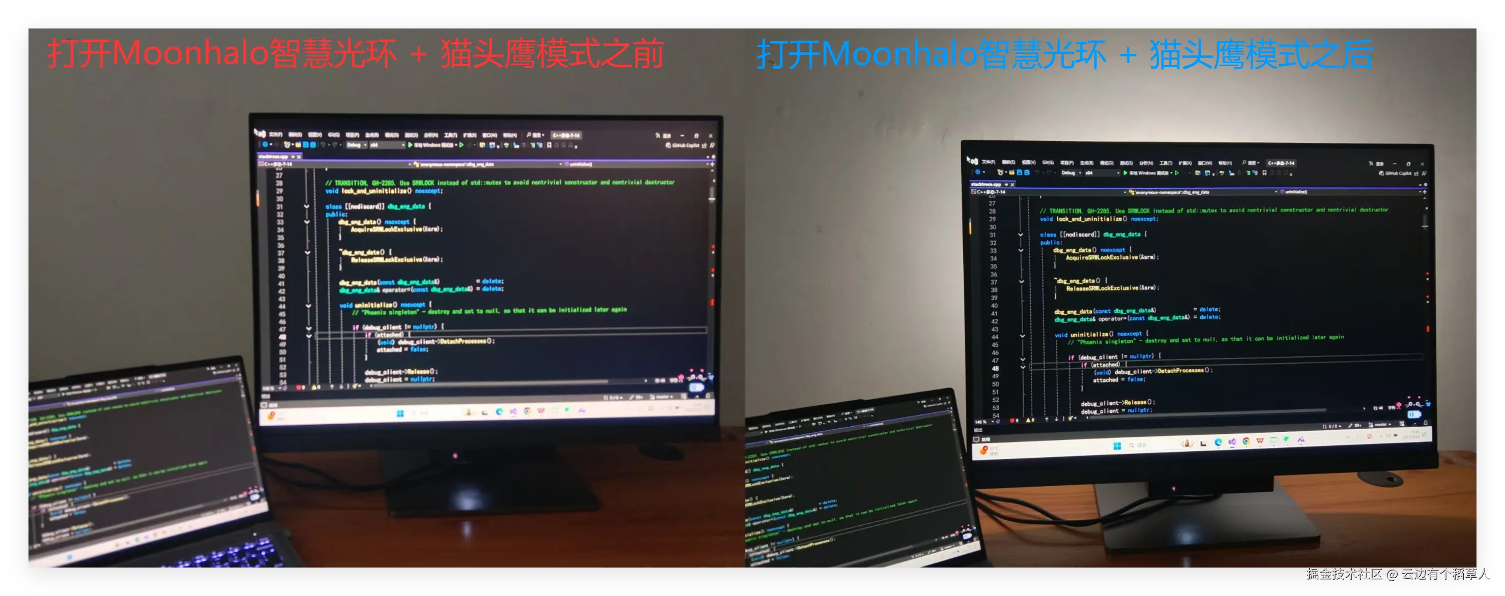 下面是使用Moonhalo智慧光环 + 猫头鹰模式前后对比效果展示: