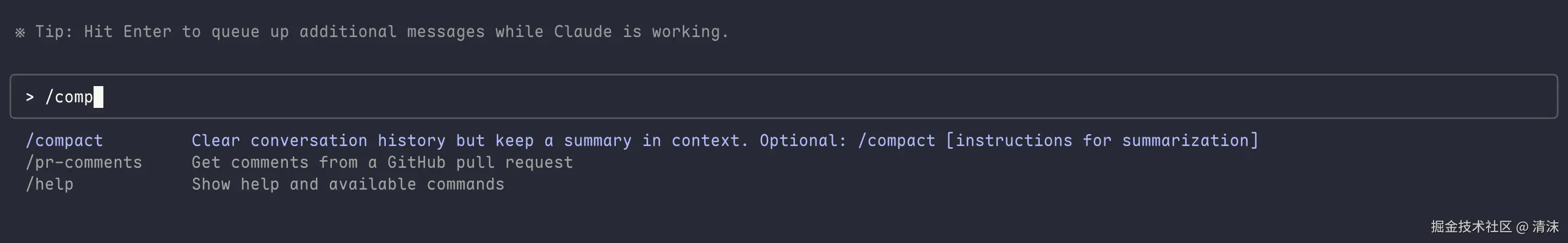 在 Claude Code 或者 Gemini CLI 中,当对话内容占用上下文窗口 92%或者更高容量时,系统会自动启动 "压缩模式",对用户与智能体的完整交互轨迹进行摘要处理。也可以通过 compact 等命令手动让智能体进行压缩,在压缩时,还可以告知智能体你想保留哪些关键信息: