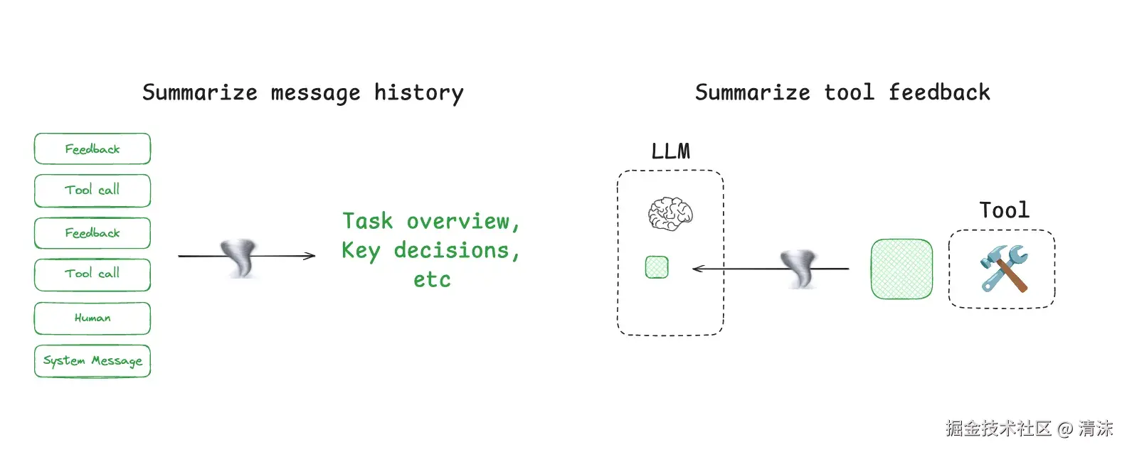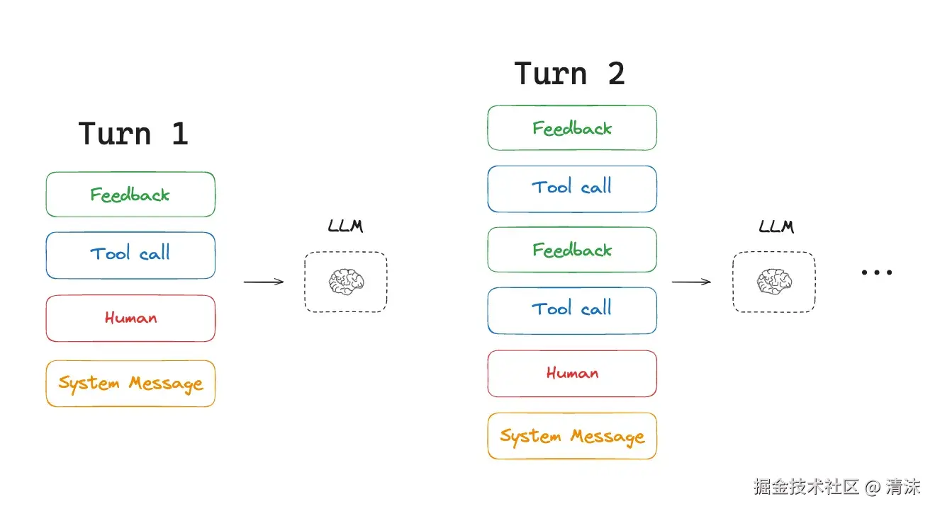 然而,长期运行任务和大量 Tool Calls,意味着智能体经常使用大量 token。毕竟 LLM 不带记忆,不记得之前发生什么。为让它具备多轮对话能力,会将历史会话信息、Tool Calls 信息全部带上。