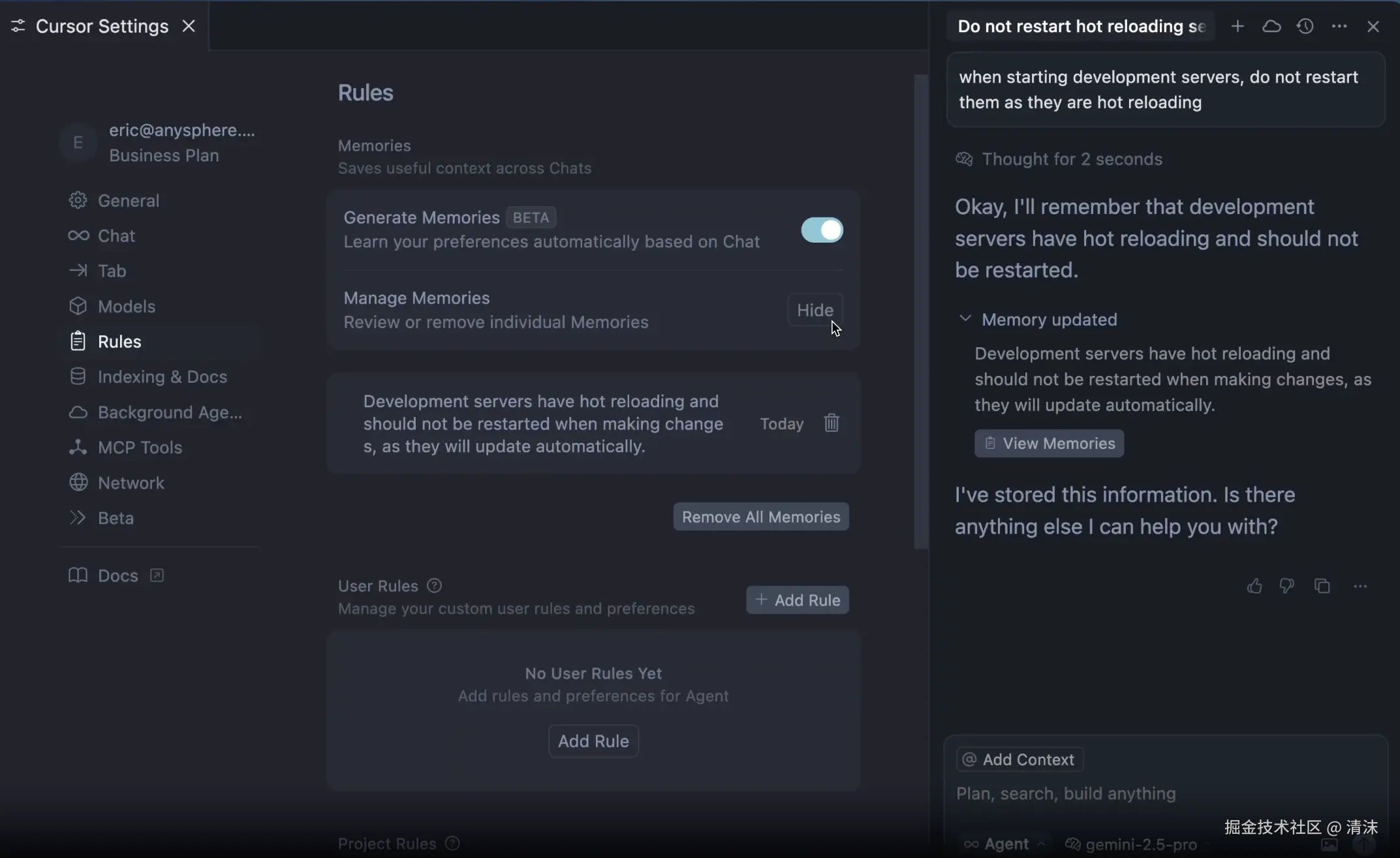 Cursor 在进行上下文压缩时对 User Rules、Project Rules、Memory 等信息会按照优先级和相关性进行压缩,就会导致一些 Rules 丢失。