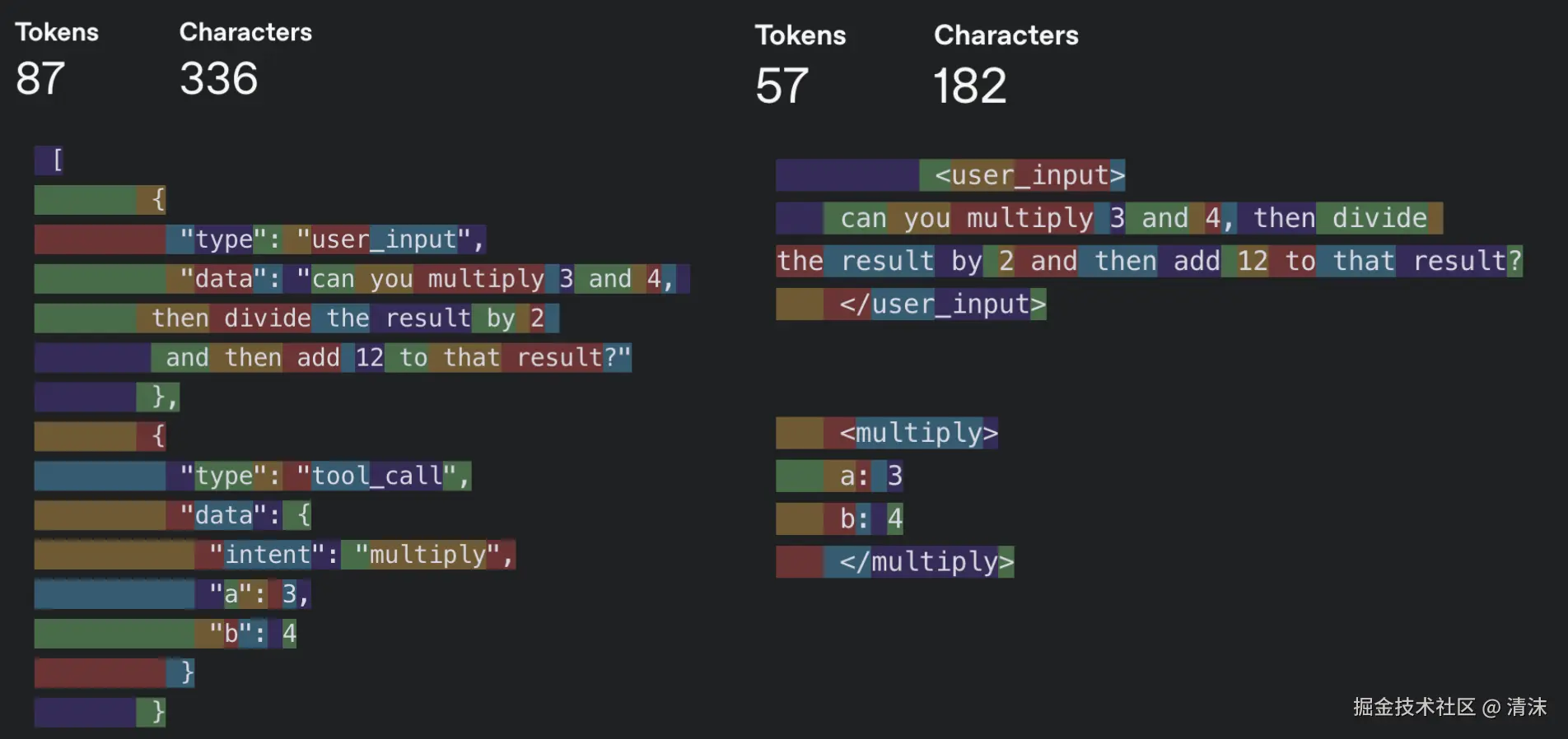 我们可以灵活尝试不同的上下文输出结构。常见的输出方式有两个 JSON Schema 或者 XML Schema。通常来说,XML 会具有更高的信息密度,以最大化 LLM 理解的方式组织信息。这意味着同样的信息,只消耗更少的 token: